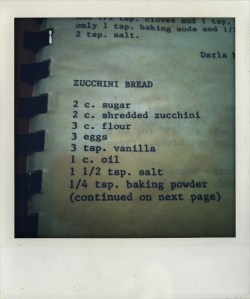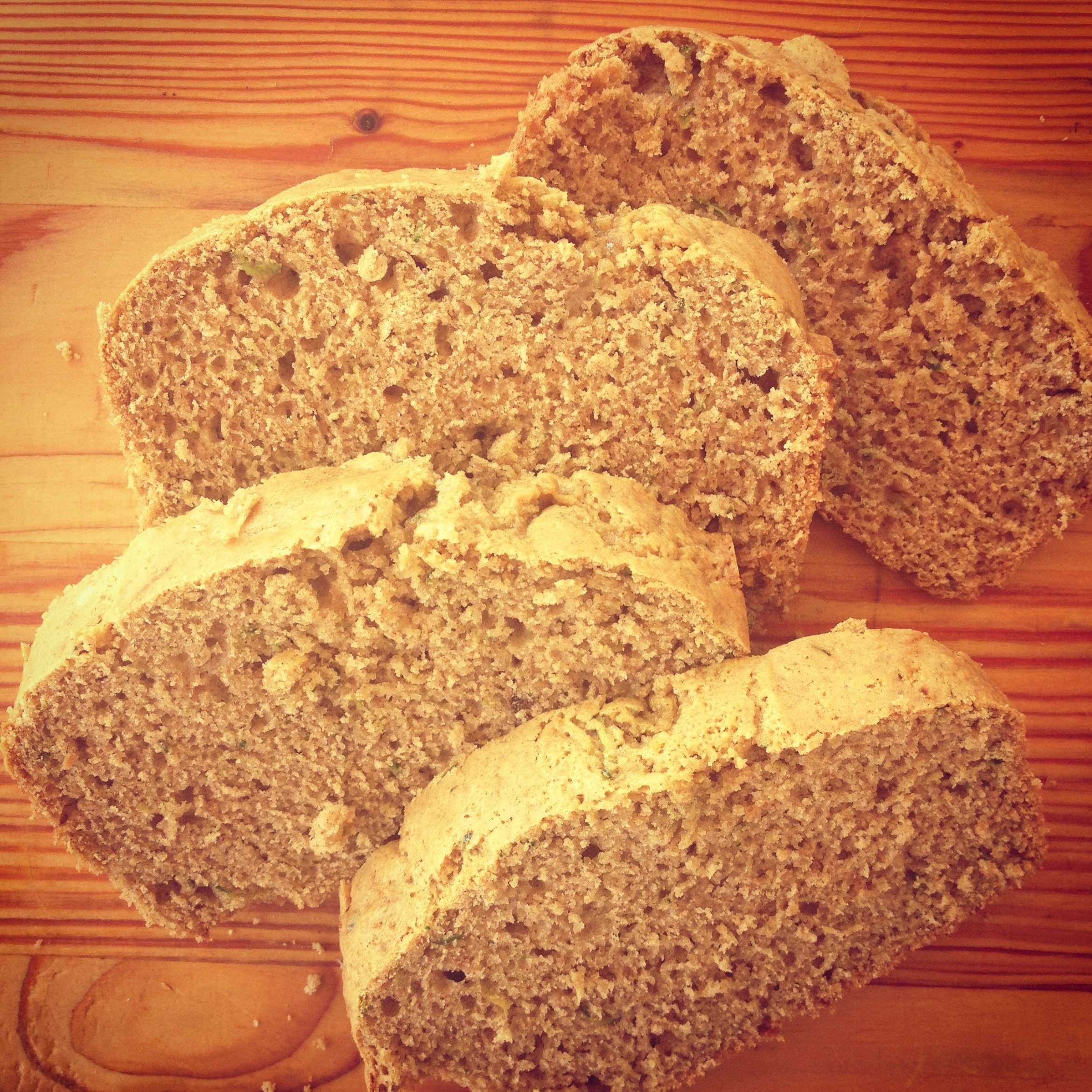 My mom has this recipe book that is older than I am. The cover is burnt off, the pages are torn and spilled on but it contains some of the best tasting recipes. I have been craving the Zucchini bread that she always made when I was younger, so I got the recipe and altered it for my gluten free lifestyle (plus I cut out some of the sugar and oil as well).