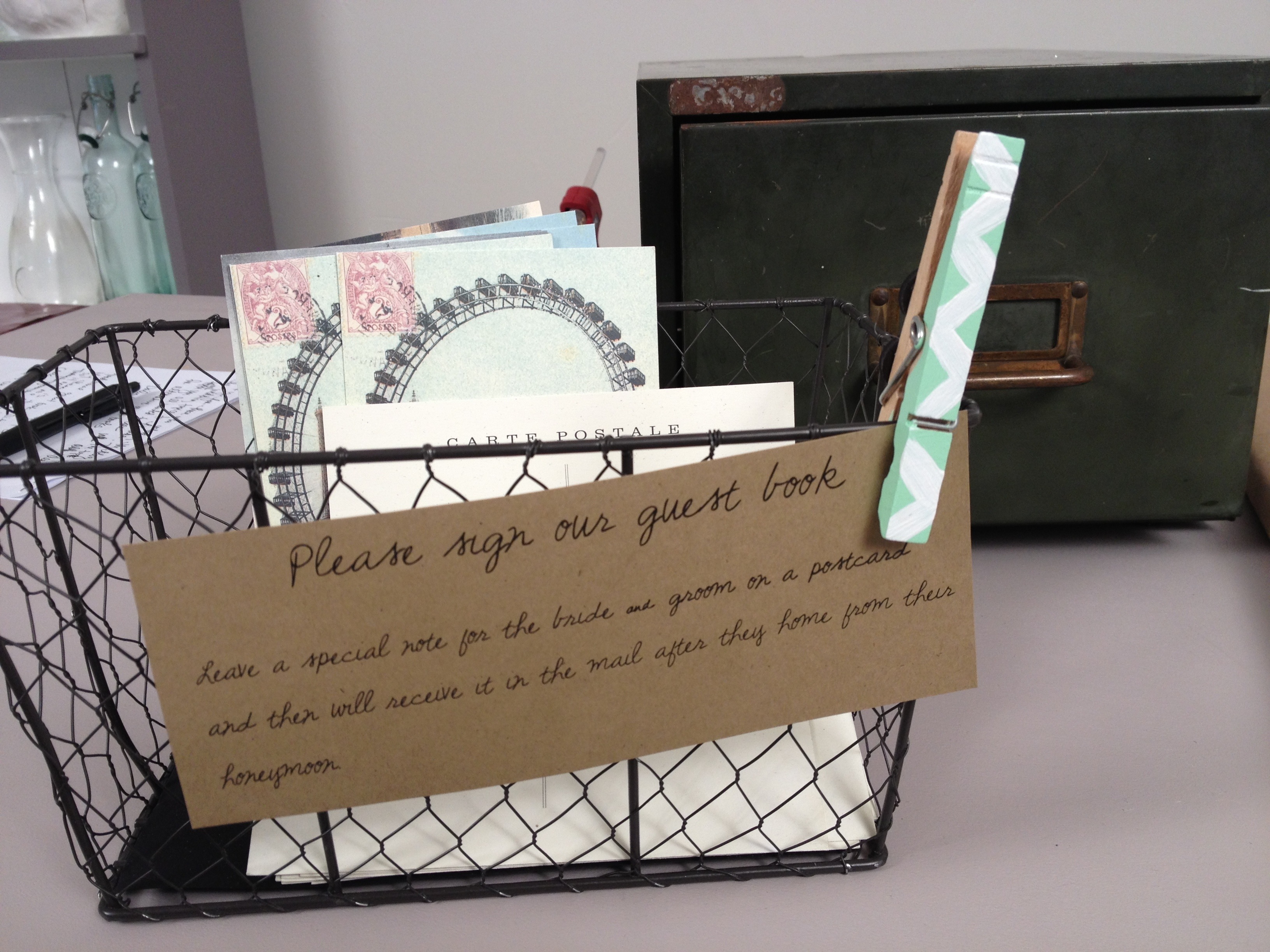 If the theme of the wedding is more rustic, consider having your guests sign vintage postcards. After the wedding have your maid-of-honor drop them off at the post office so that when the bride & groom return from the honeymoon their mailbox is filled with well wishes from the guests. Plus, who doesn’t love snail mail? If you are looking for vintage postcards then check out this awesome Etsy shop.