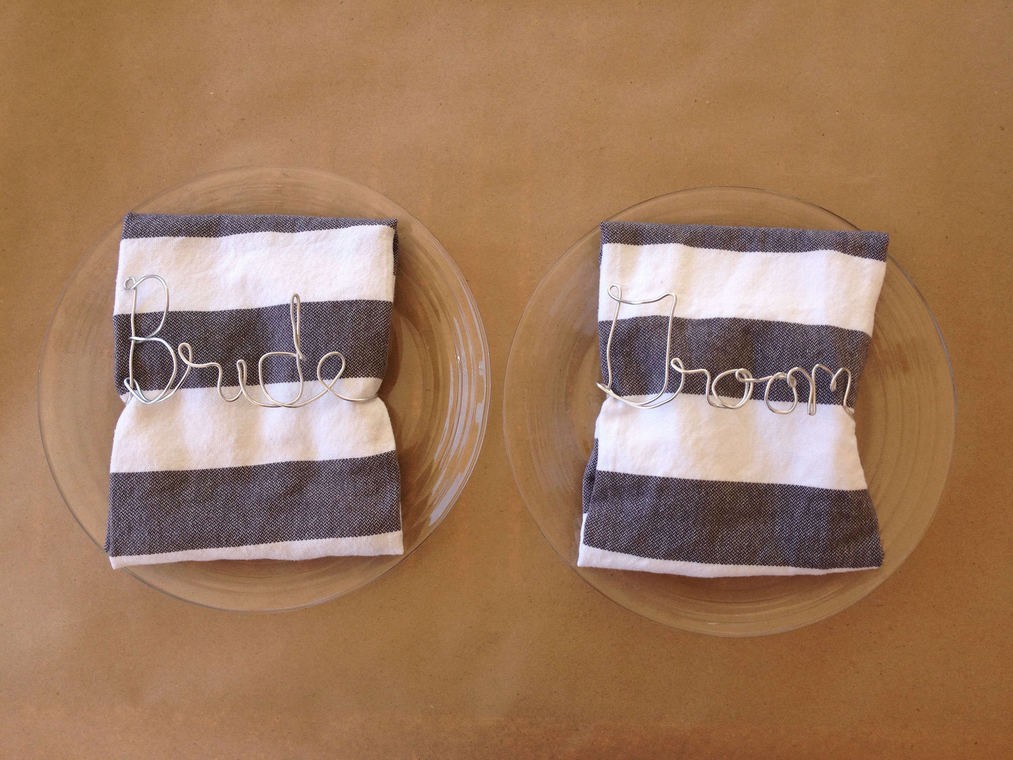 There was wire left over so I used it to make “place cards” for the bride and groom. Leave a comment and let me know if you have any other ideas for how to use the wire to personalize your big day.